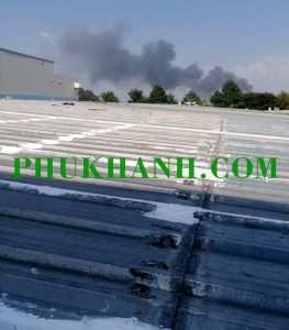 Nhà máy đã đưa vào sử dụng hơn 10 năm. Trong quá trình sử dụng hiện tượng dột luôn diễn ra và đã có nhiều nhà thầu tham gia xử lý nhưng đều chưa thể khắc phục được. Có những vị trí có tới 3 lớp keo khác nhau dán chồng lên nhau nhưng vẫn không hết dột. Công ty chúng tôi đã thi công chống dột và phủ keo kháng tia tử ngoại lên toàn bộ diện tích mái tôn.