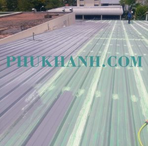Tiến hành phun lớp lót và phun keo kháng tia tử ngoại phủ mái tôn hoàn thiện bề mặt.
