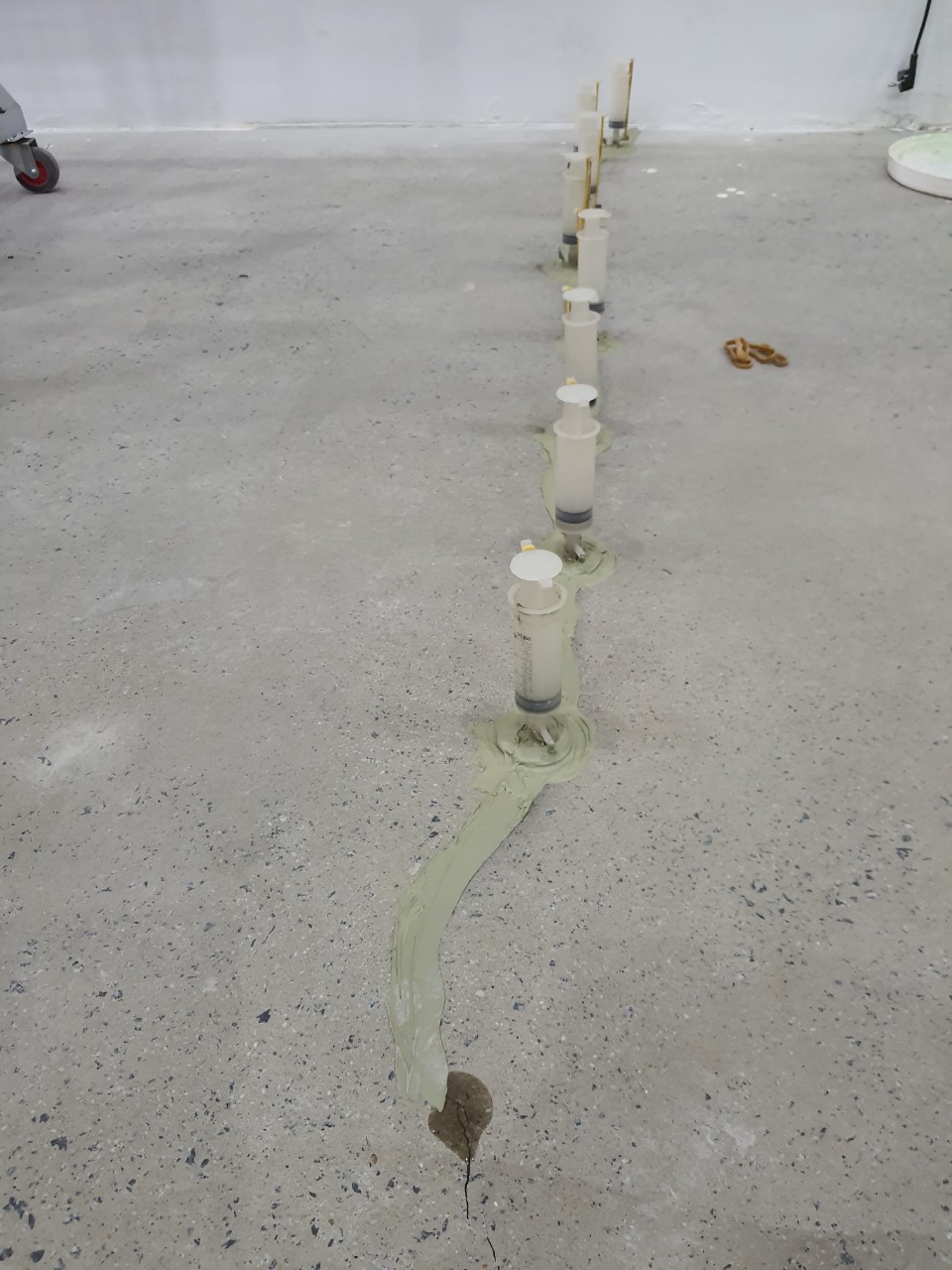 Cắm xy lanh vào lỗ neo và bơm keo epoxy vào bên trong.