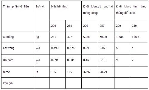 5. Một số Mác bê tông và cách tính thông dụng ở Việt Nam