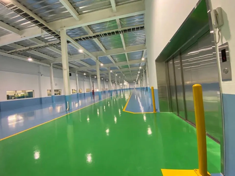 Sơn epoxy có nhiều màu sắc, giúp phân khu rõ ràng: lối đi, khu vực sản xuất, kho bãi, bãi xe… Điều này không chỉ tăng tính thẩm mỹ mà còn đáp ứng yêu cầu ISO, GMP, HACCP và các tiêu chuẩn quản lý chất lượng.