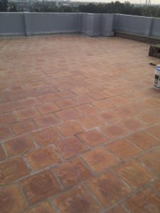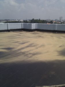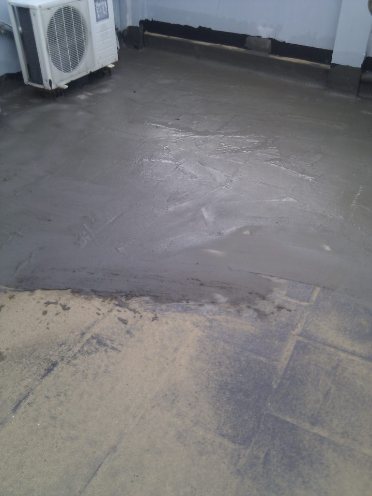 Sàn sân thượng được lát bằng gạch tàu. Bề mặt sàn ban đầu chưa xử lý chống thấm. Sau 5 năm đi vào hoạt động. Bề mặt sàn xuất hiện nhiều vết nứt và bị thấm nước xuống các phòng ban làm việc tầng 4.