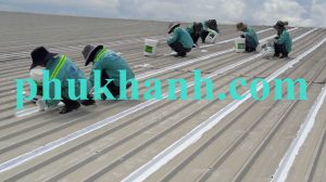 Thi công chống dột mái tôn tại vị trí tiếp giáp dọc sóng tôn.