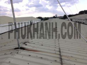 Hiện trạng mái tôn còn tốt nhưng xuất hiện nhiều vị trí dột. Nguyên nhân do sau thời gian dài đưa vào sử dụng các vị trí đinh vít và vị trí tiếp giáp các tấm tôn có độ hở khá lớn gây ra hiện tượng dột mái tôn cục bộ tại nhiều vị trí khác nhau.